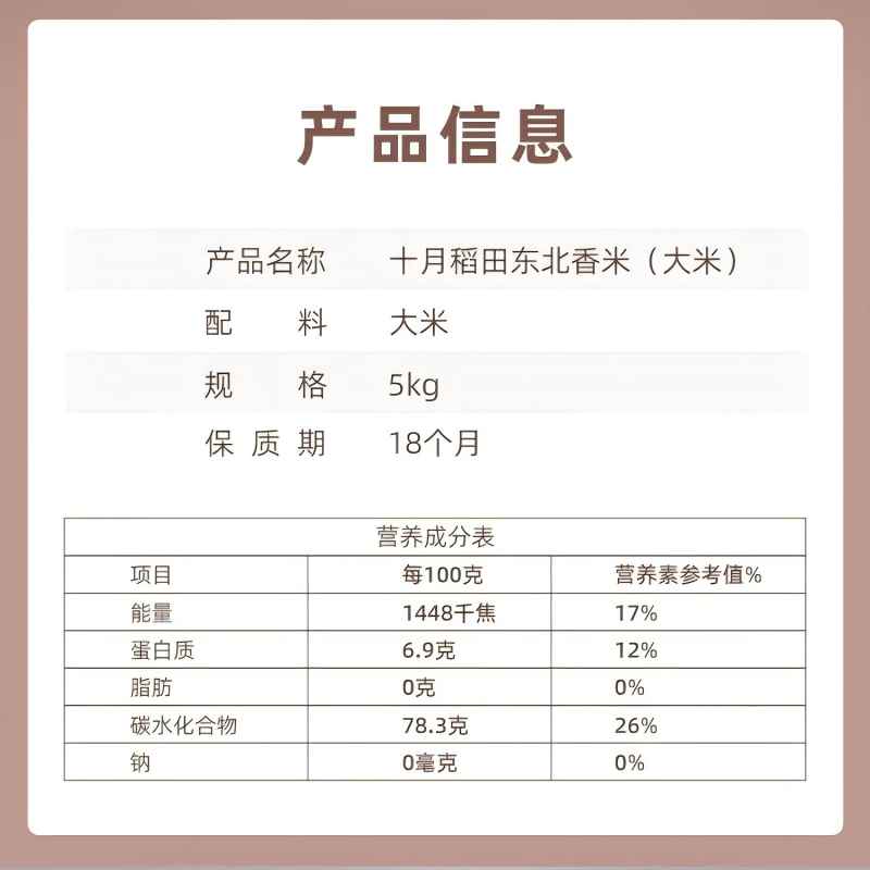 商品简介【惠警超市】:十月稻田 福满人家东北香米5kg