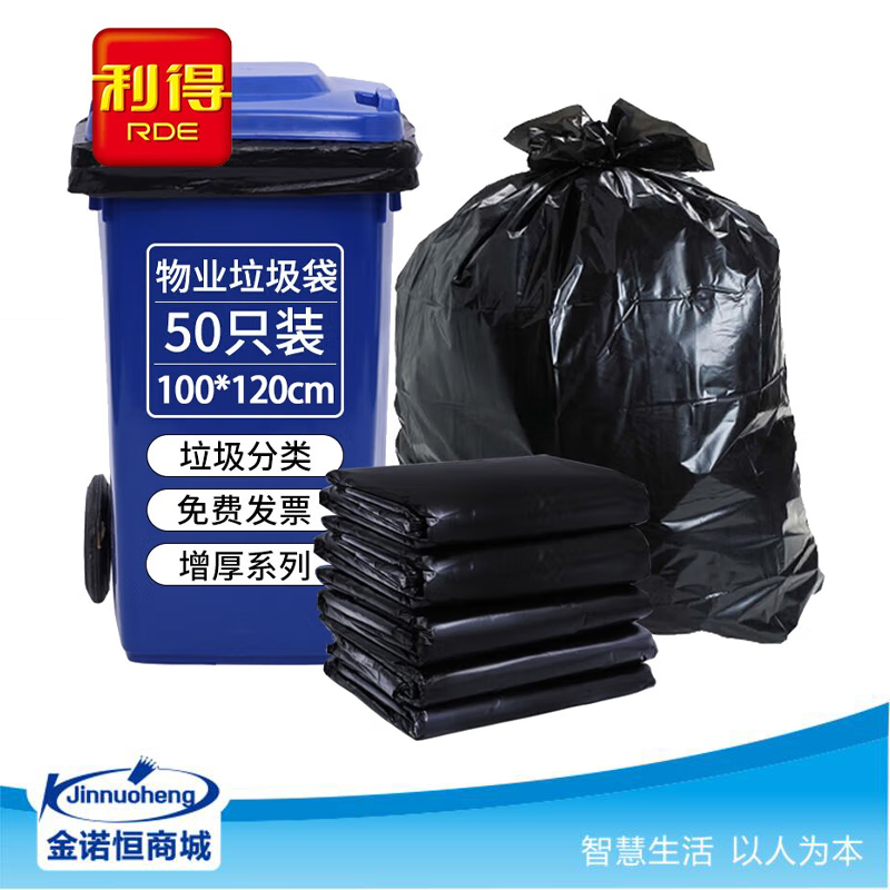 利得黑色平口垃圾袋100*120cm*50只