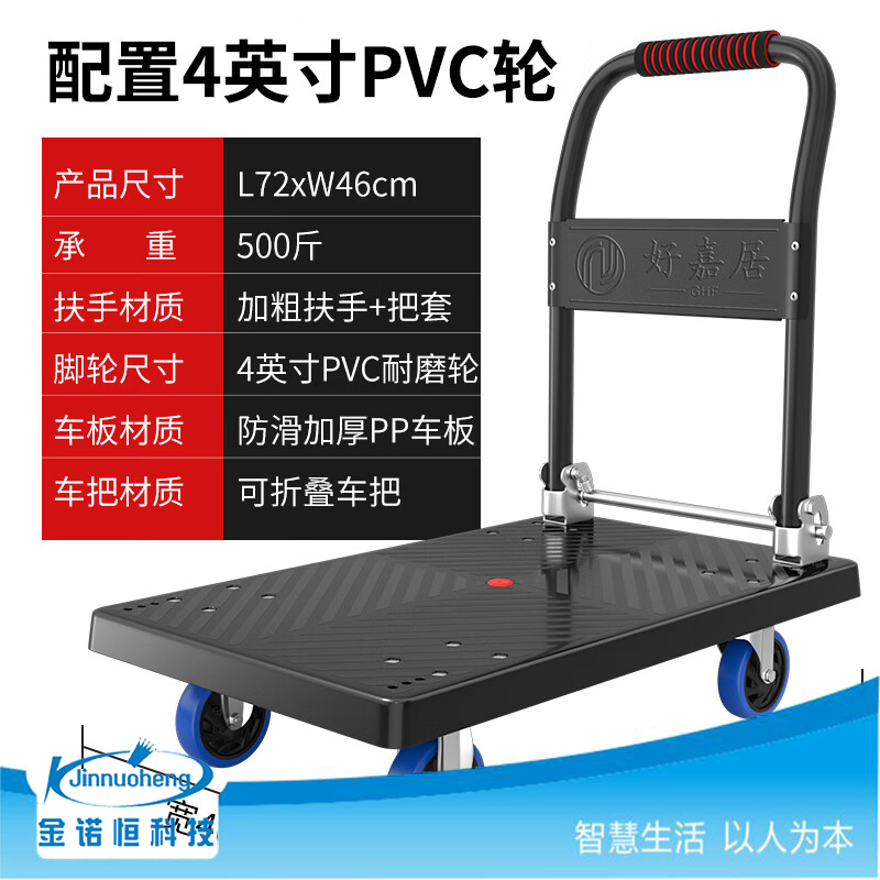 好嘉居折叠平板手推车72*46cm 4寸耐磨轮 载重500斤